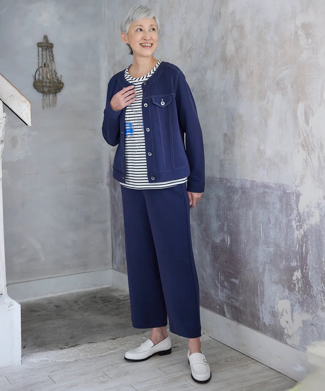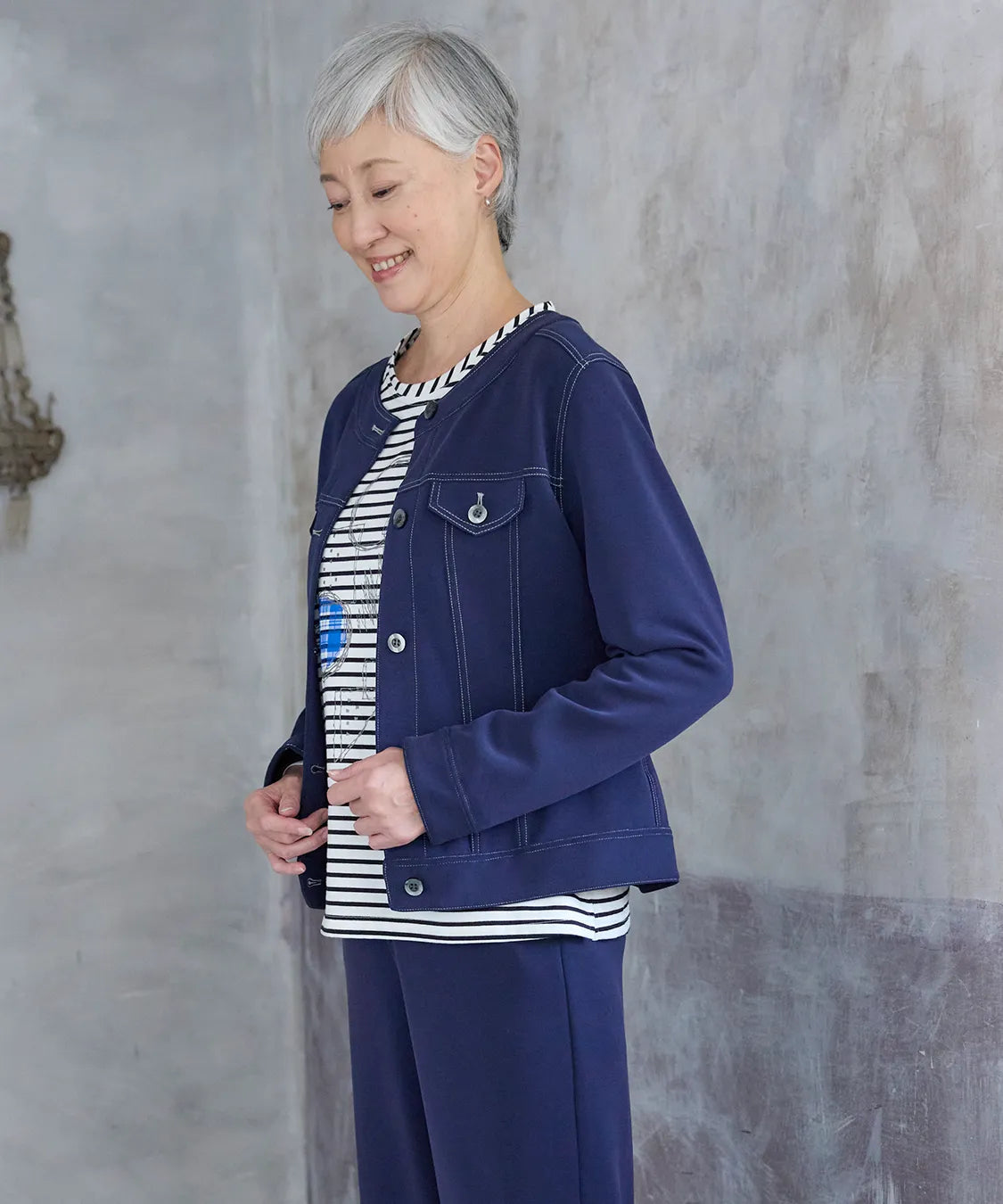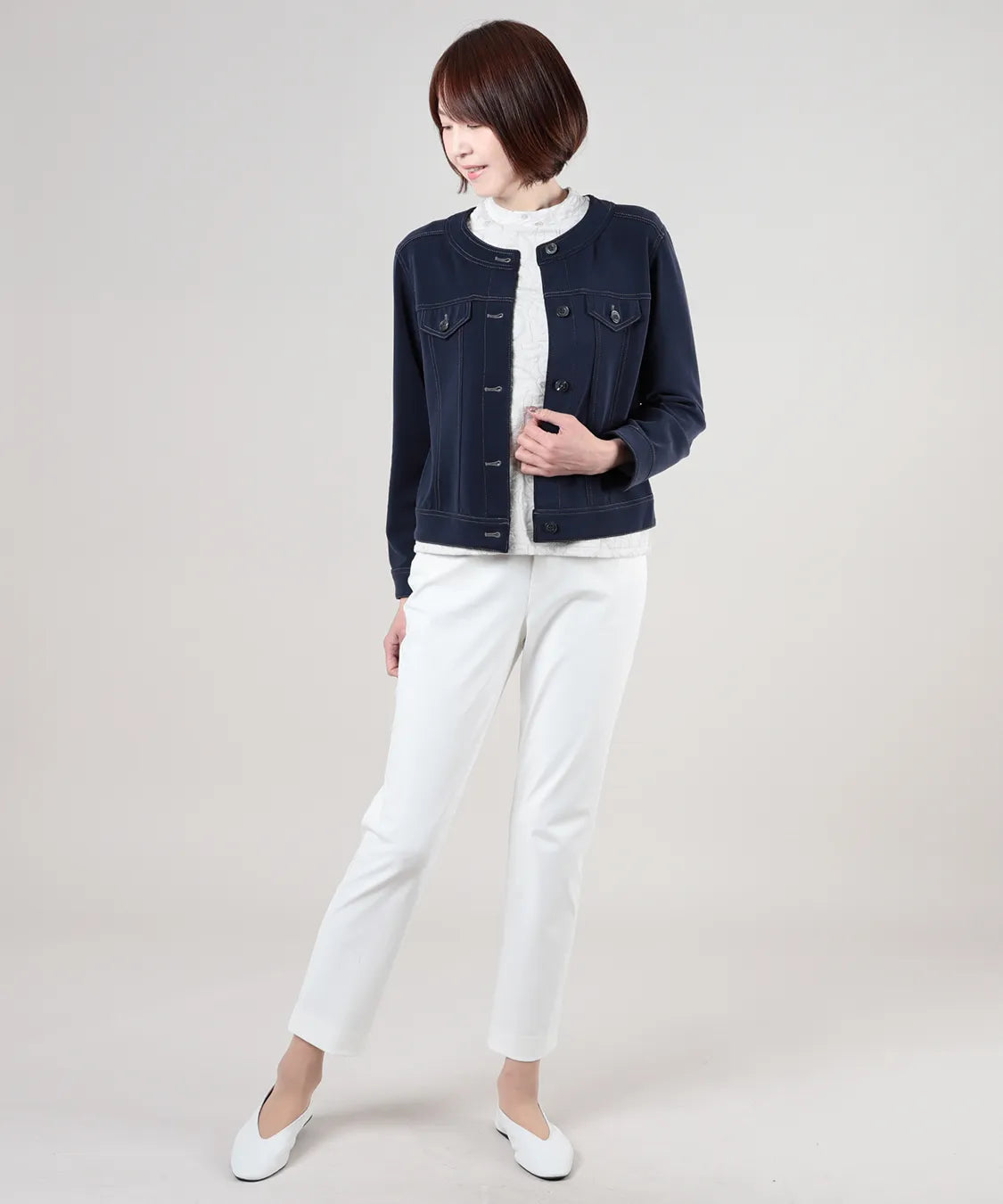 軽やかな羽織りで、春の装いに洗練を。