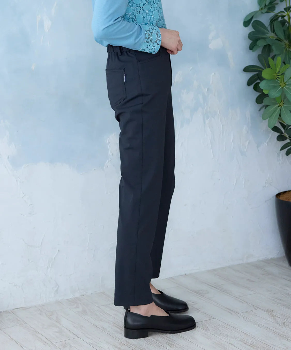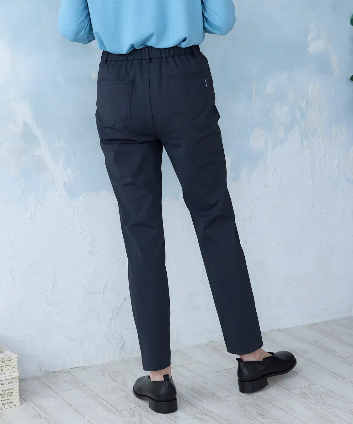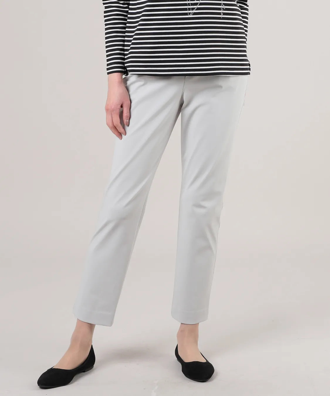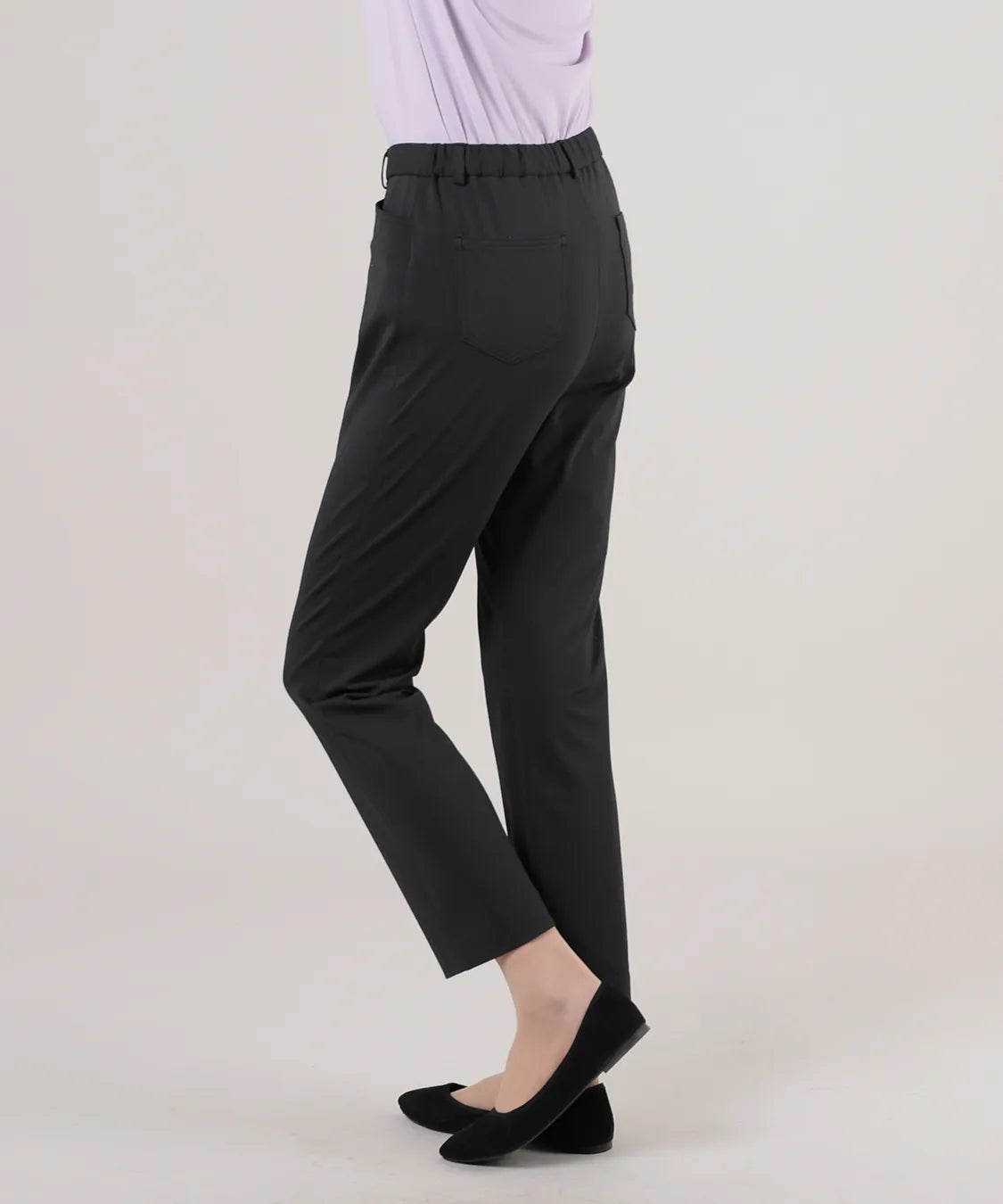 伸縮性の高い素材で動きやすく、春夏シーズンの軽やかな着心地を実現した定番スリムパンツ。後ろウエストのみゴム仕様でストレスなくフィットし、すっきりとした美しいシルエットをキープします。シンプルながら上品なデザインで、通勤から休日まで幅広いコーディネートに馴染む一着です。