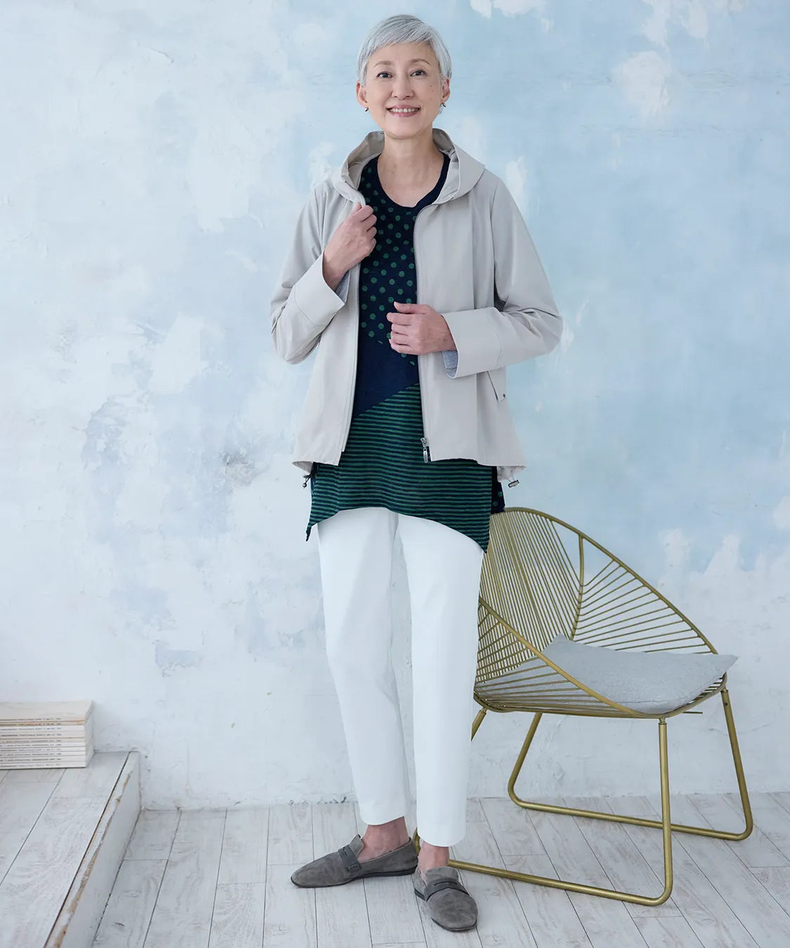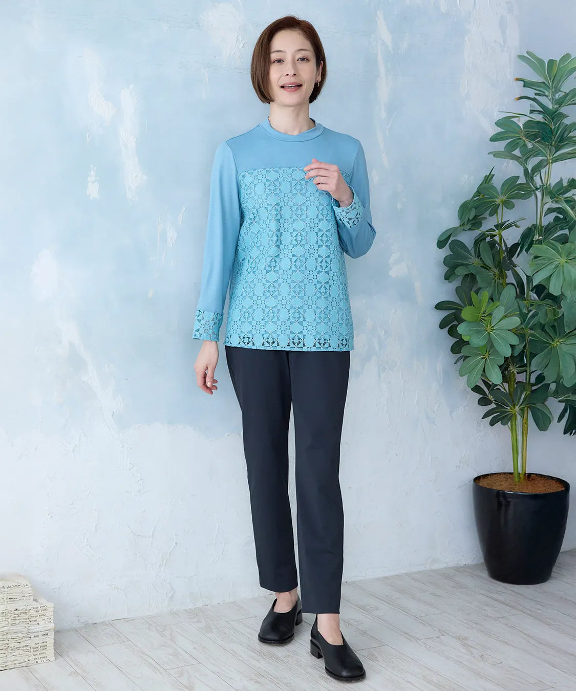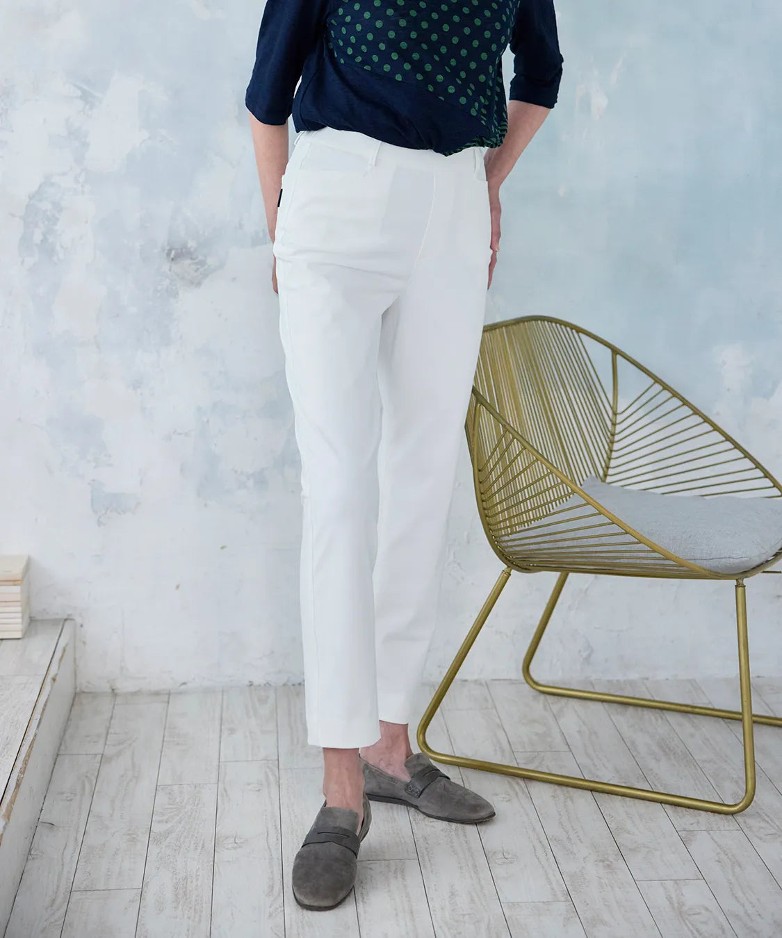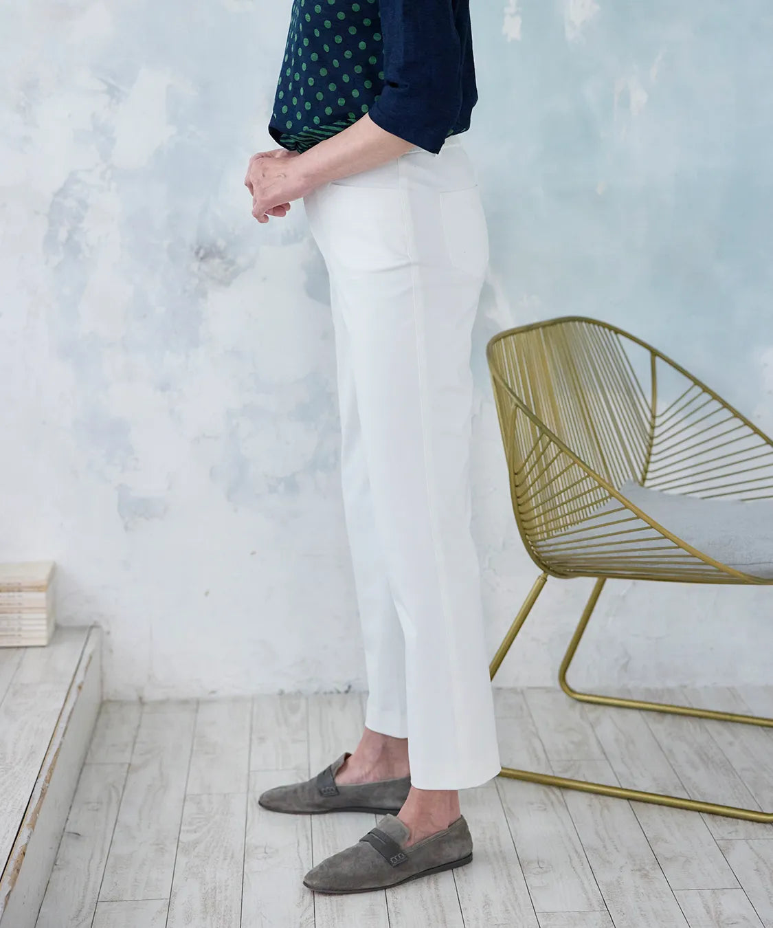 伸縮性の高い素材で動きやすく、春夏シーズンの軽やかな着心地を実現した定番スリムパンツ。後ろウエストのみゴム仕様でストレスなくフィットし、すっきりとした美しいシルエットをキープします。シンプルながら上品なデザインで、通勤から休日まで幅広いコーディネートに馴染む一着です。