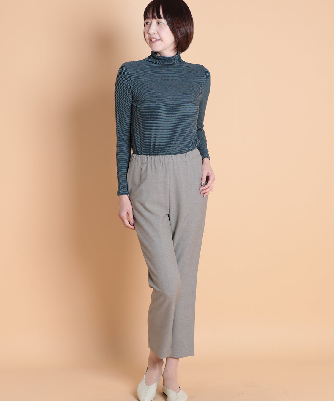 適度なふくらみとストレッチ性を兼ね備えた素材で、心地よい穿き心地のパンツです。程よいゆとりのあるストレートシルエットとくるぶし丈で、軽さのあるスタイリングが楽しめます。縦横に伸びる2WAYストレッチで、膝の曲げ伸ばし等ストレスフリー。