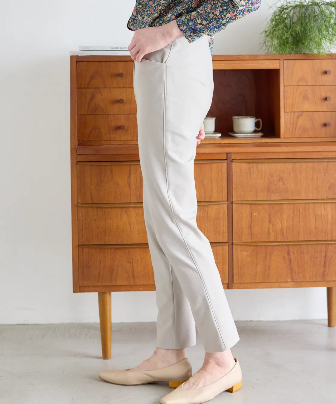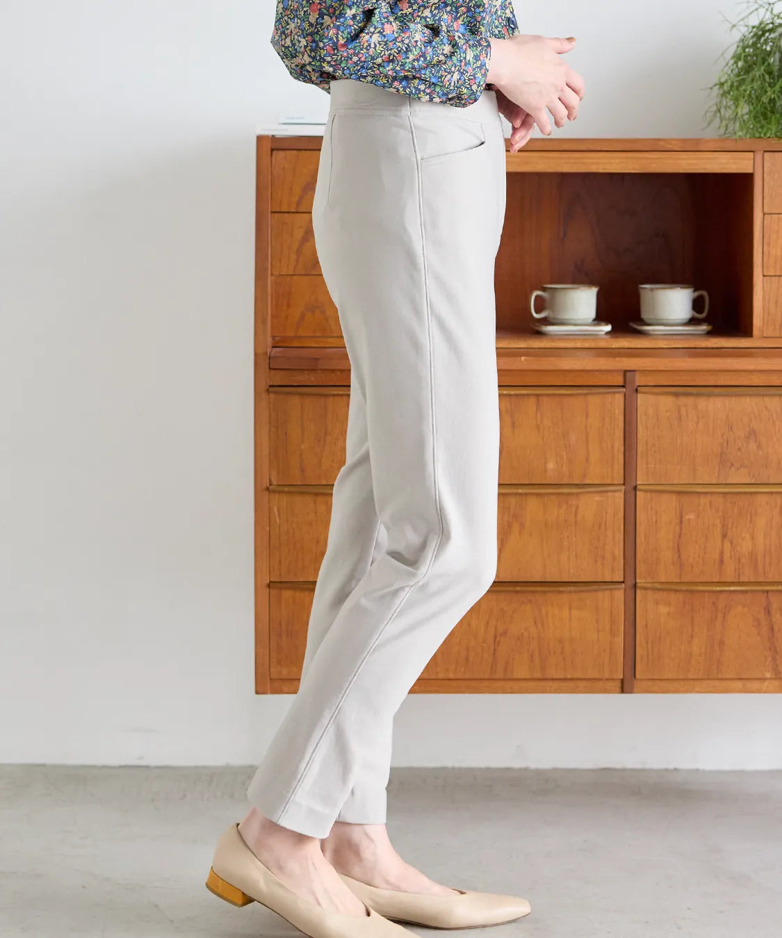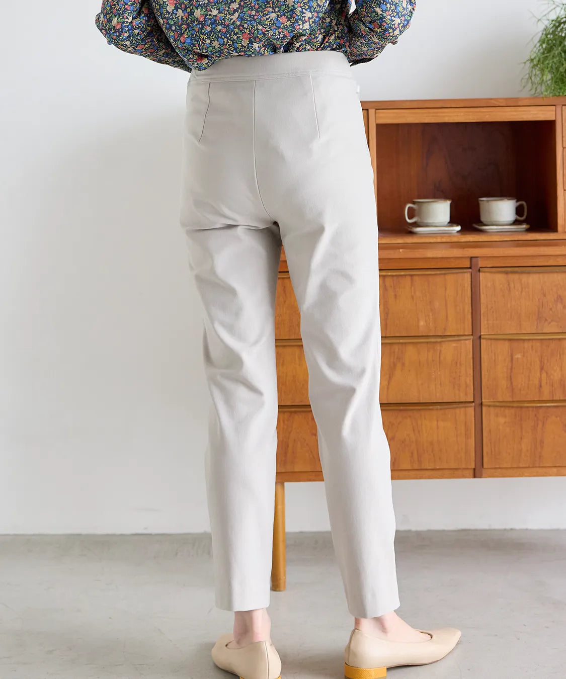 やわらかなピーチタッチ素材が心地よい、上品スリムシルエットのアンクルパンツ。