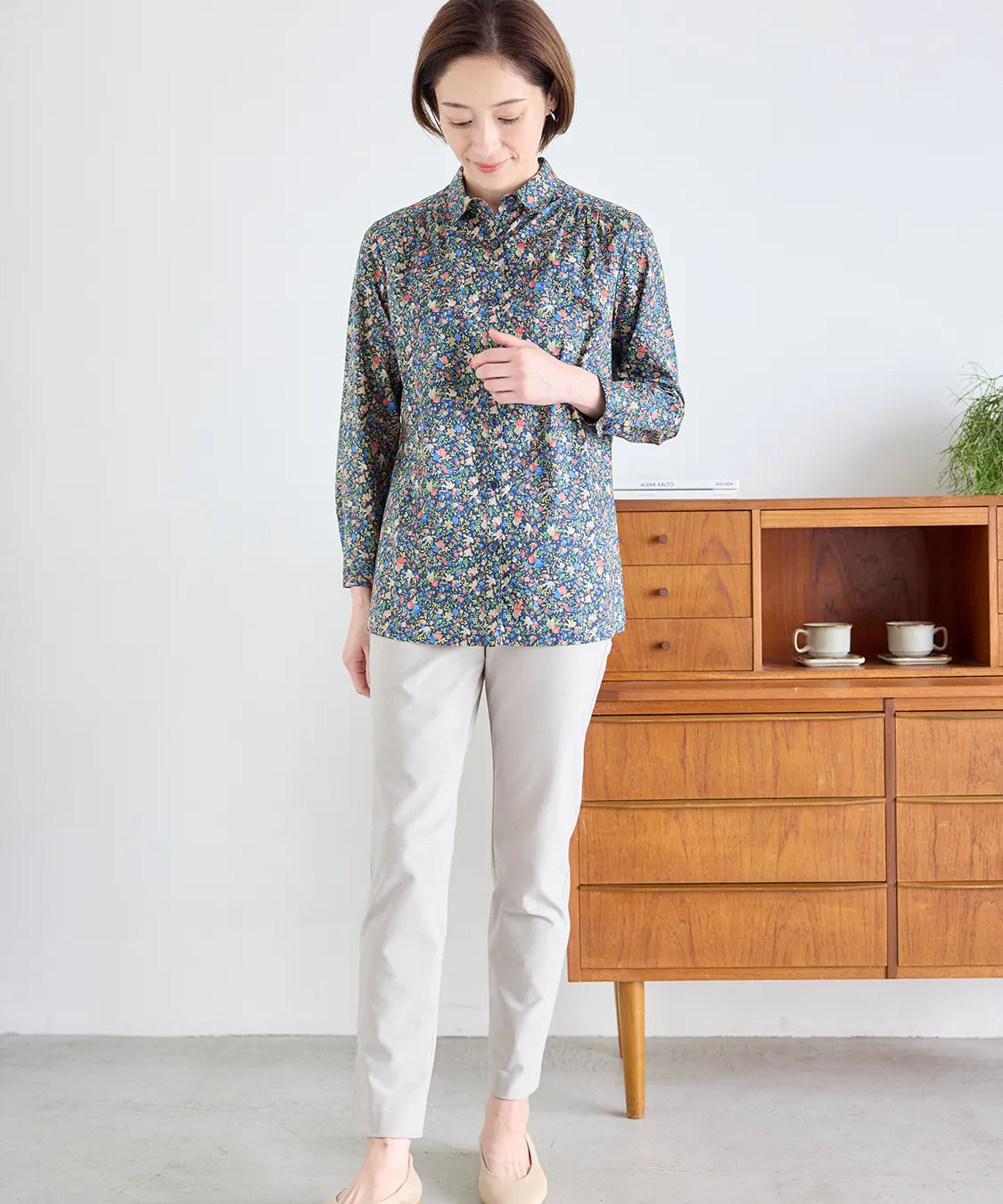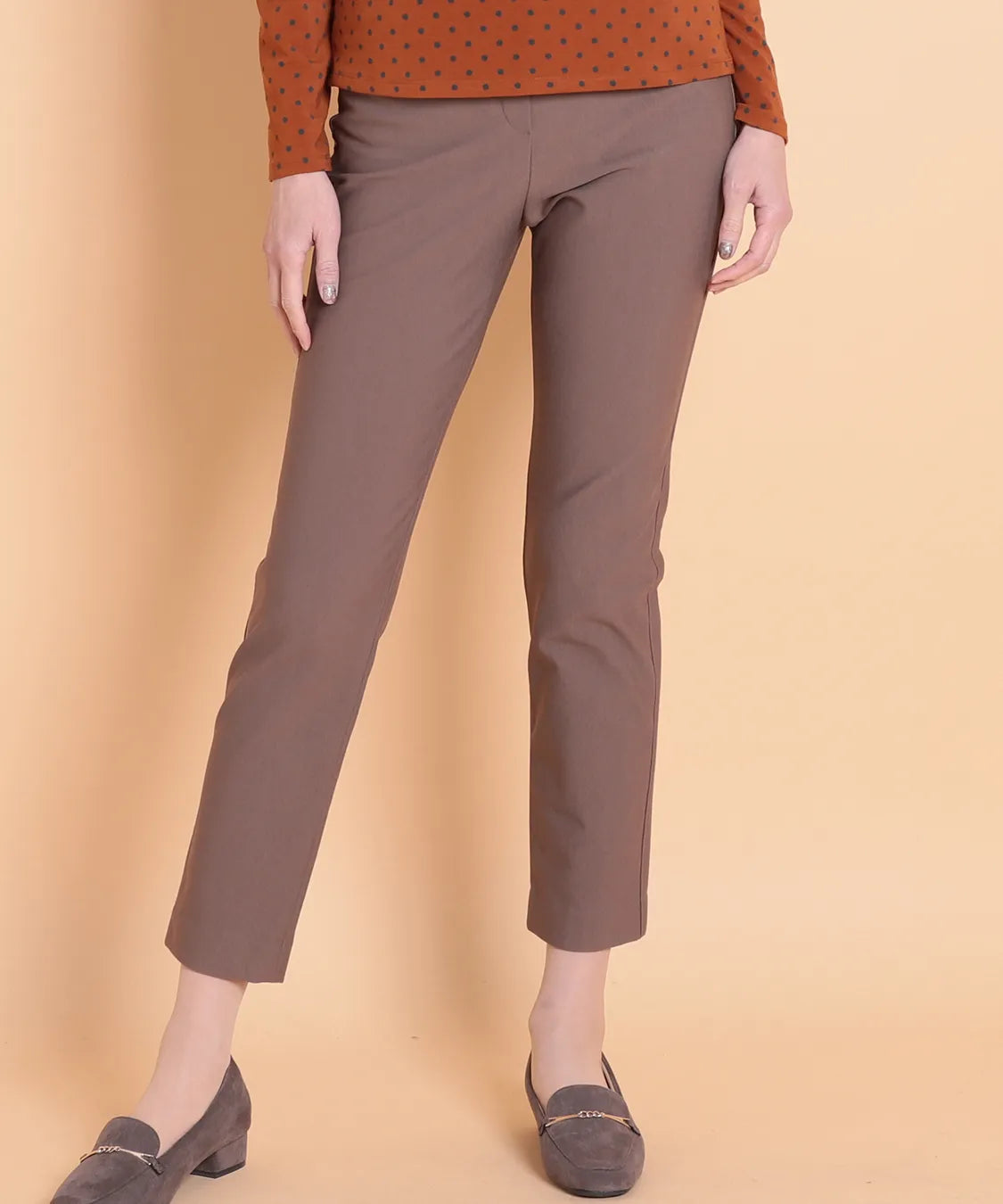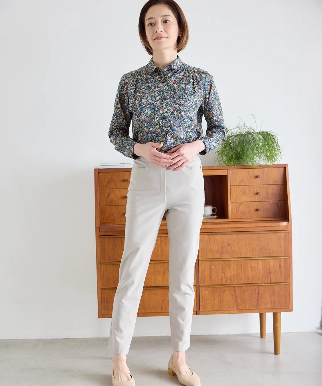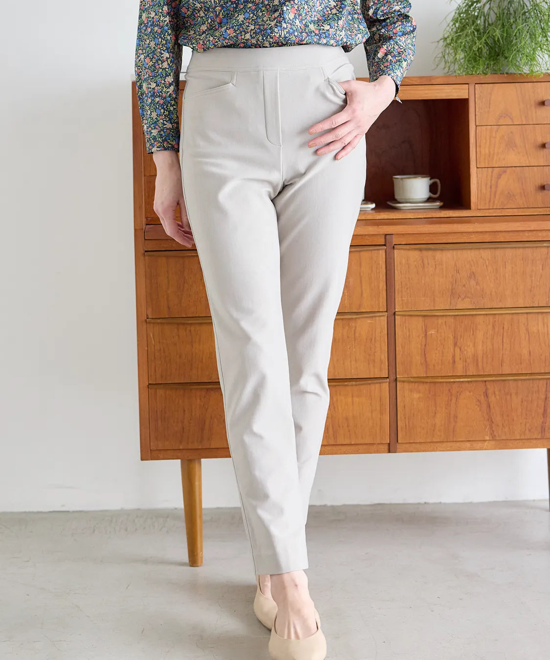 やわらかなピーチタッチ素材が心地よい、上品スリムシルエットのアンクルパンツ。