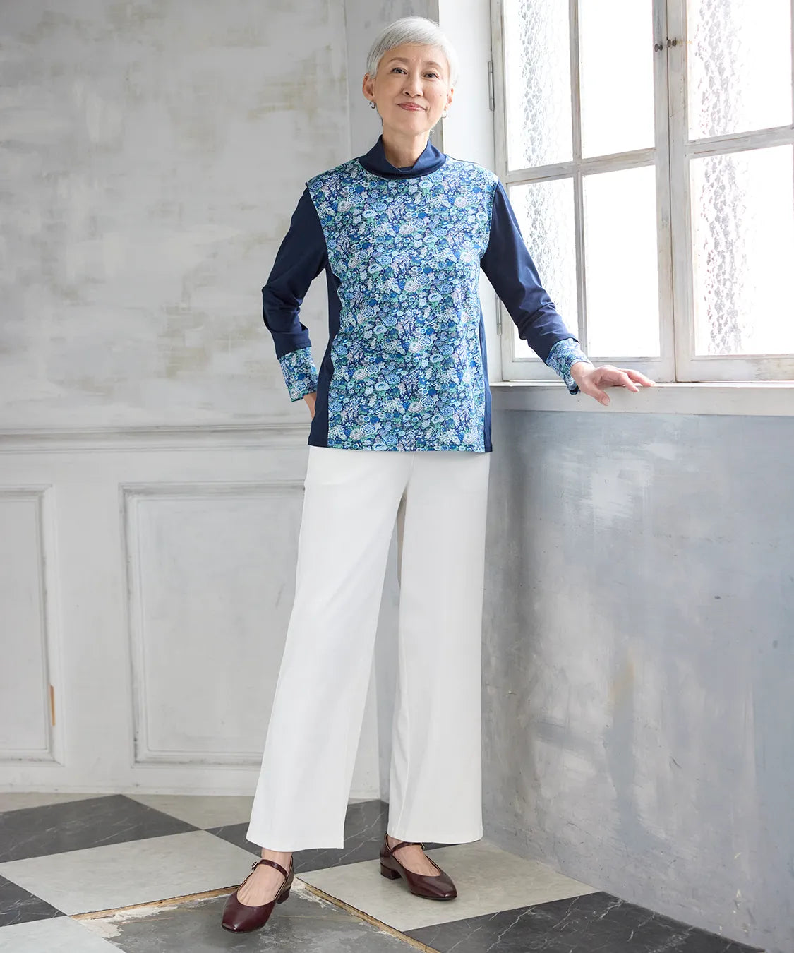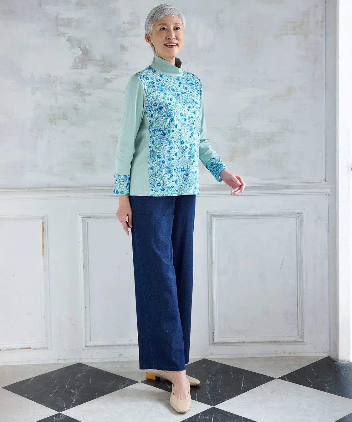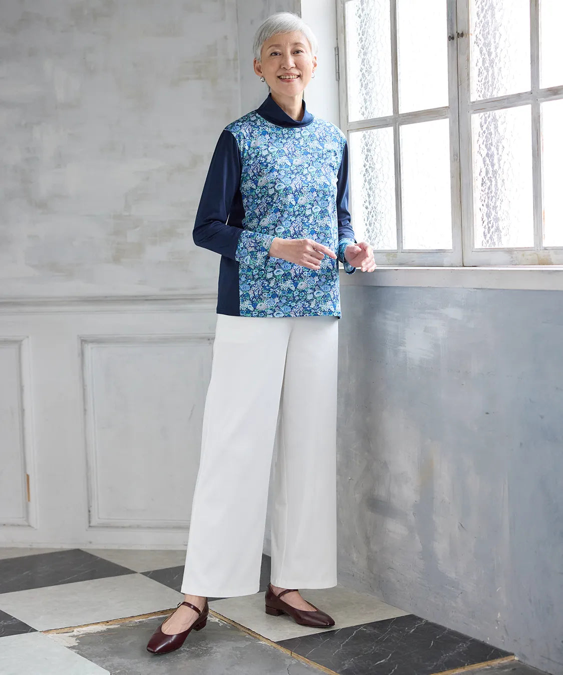 リバティプリントでつくる、上品で華やかな着こなし。