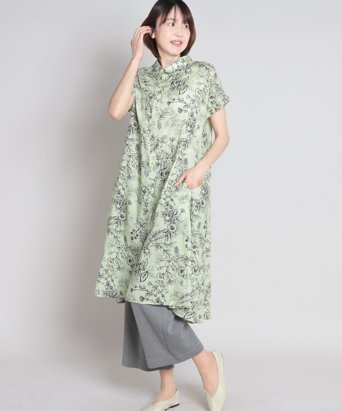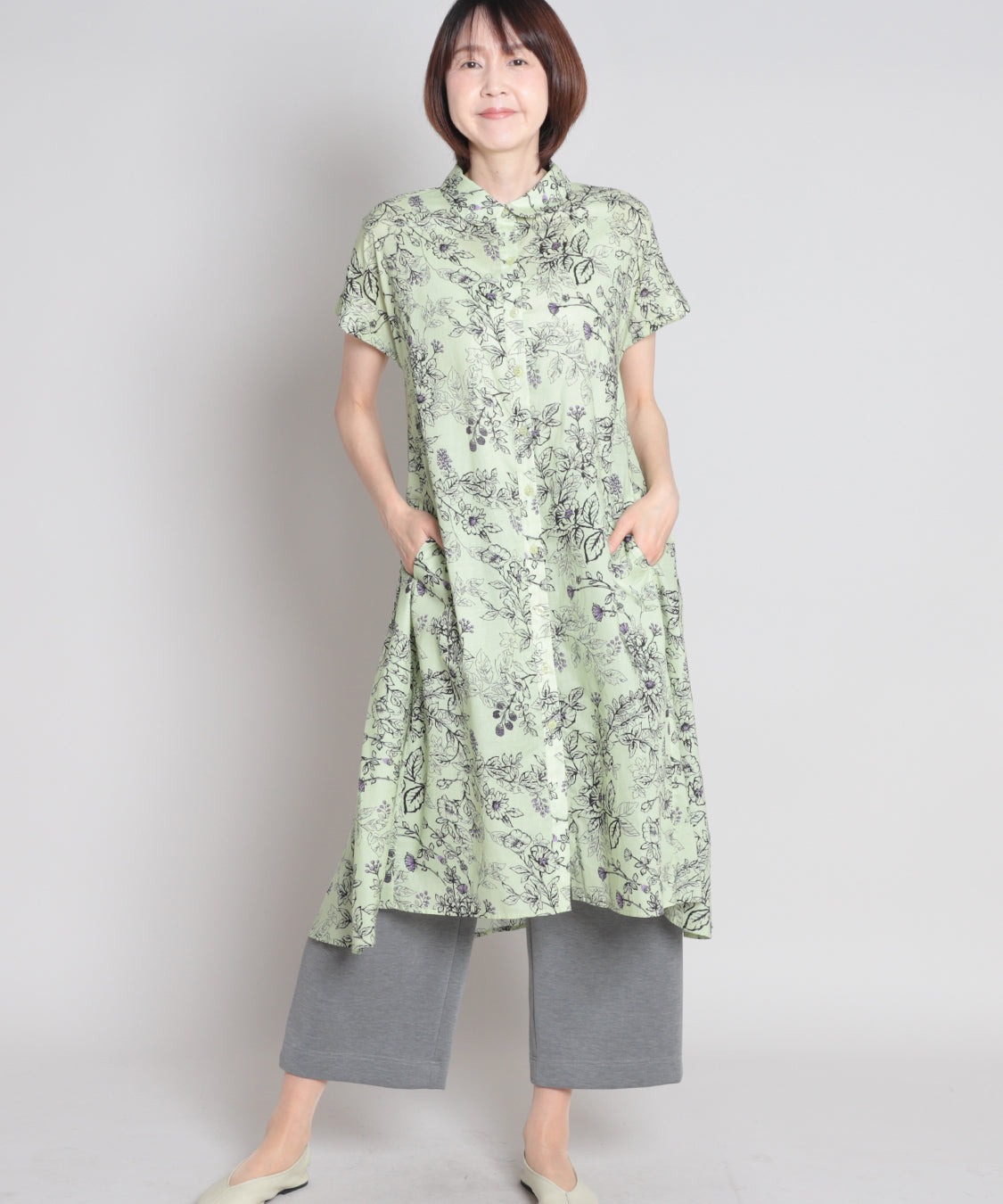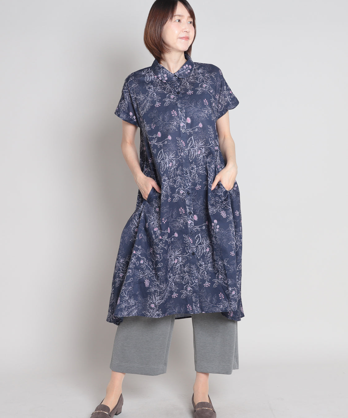 総柄で存在感があり、一枚で華やかに着映え