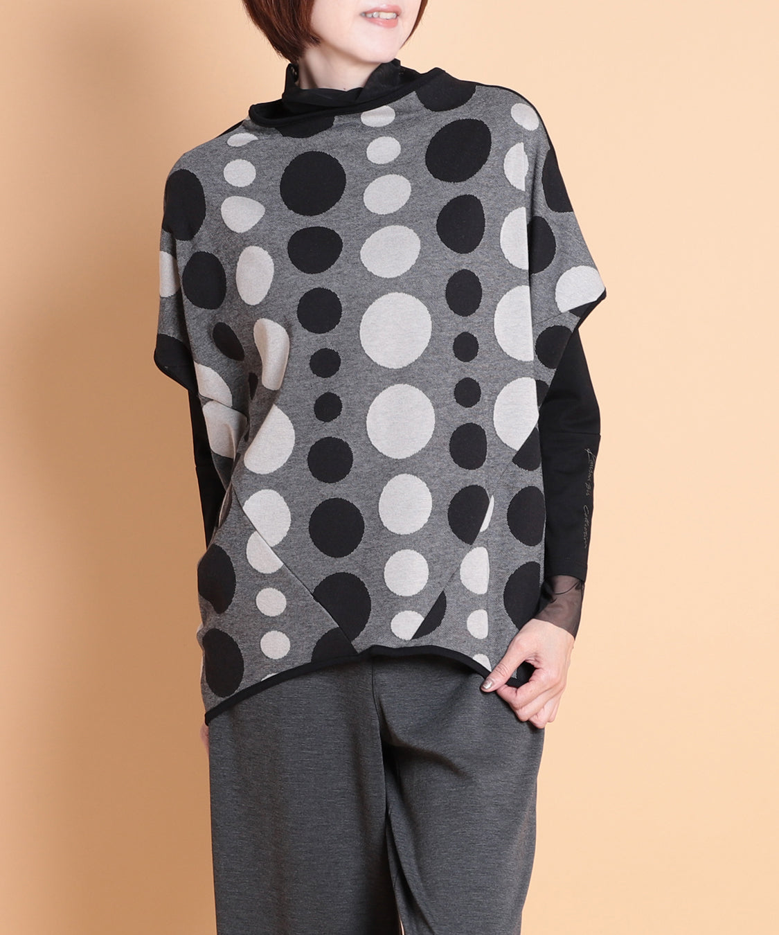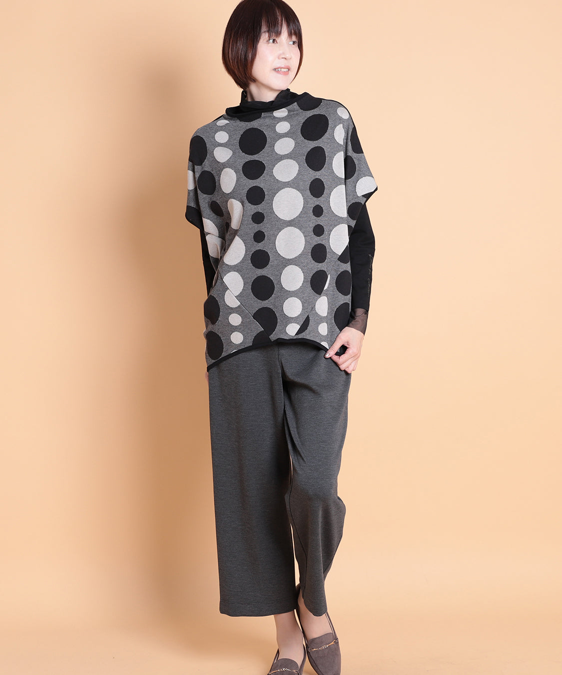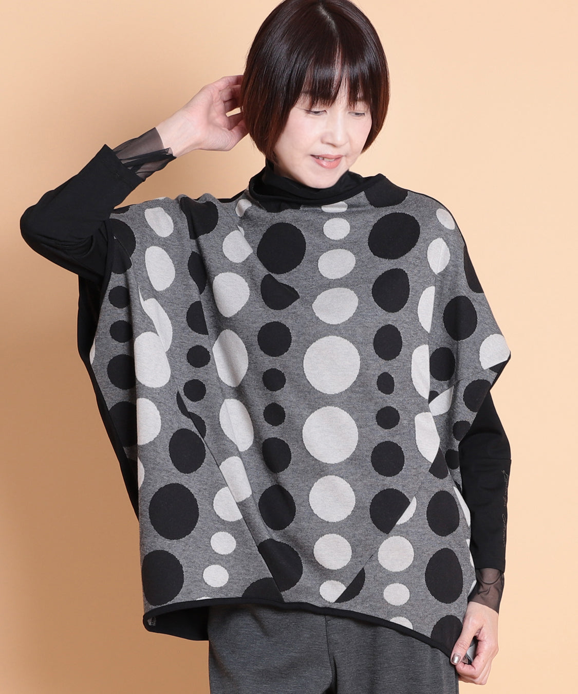 ジャカード編みの表情豊かなドット柄を、ゆったり優しいシルエットに。柔らかなカットソーチュニックは、シンプルなスタイルに重ねるだけで、シックな華やぎとおしゃれ感を補えます。