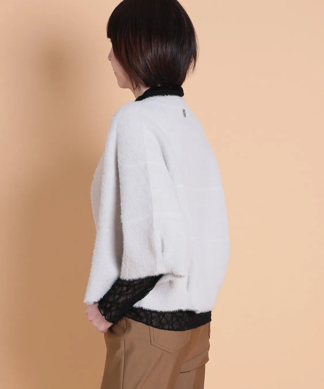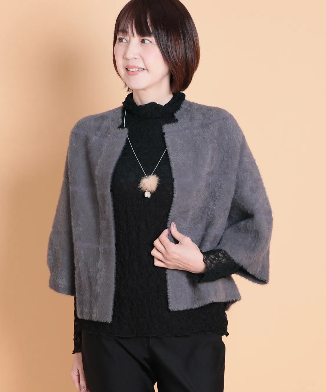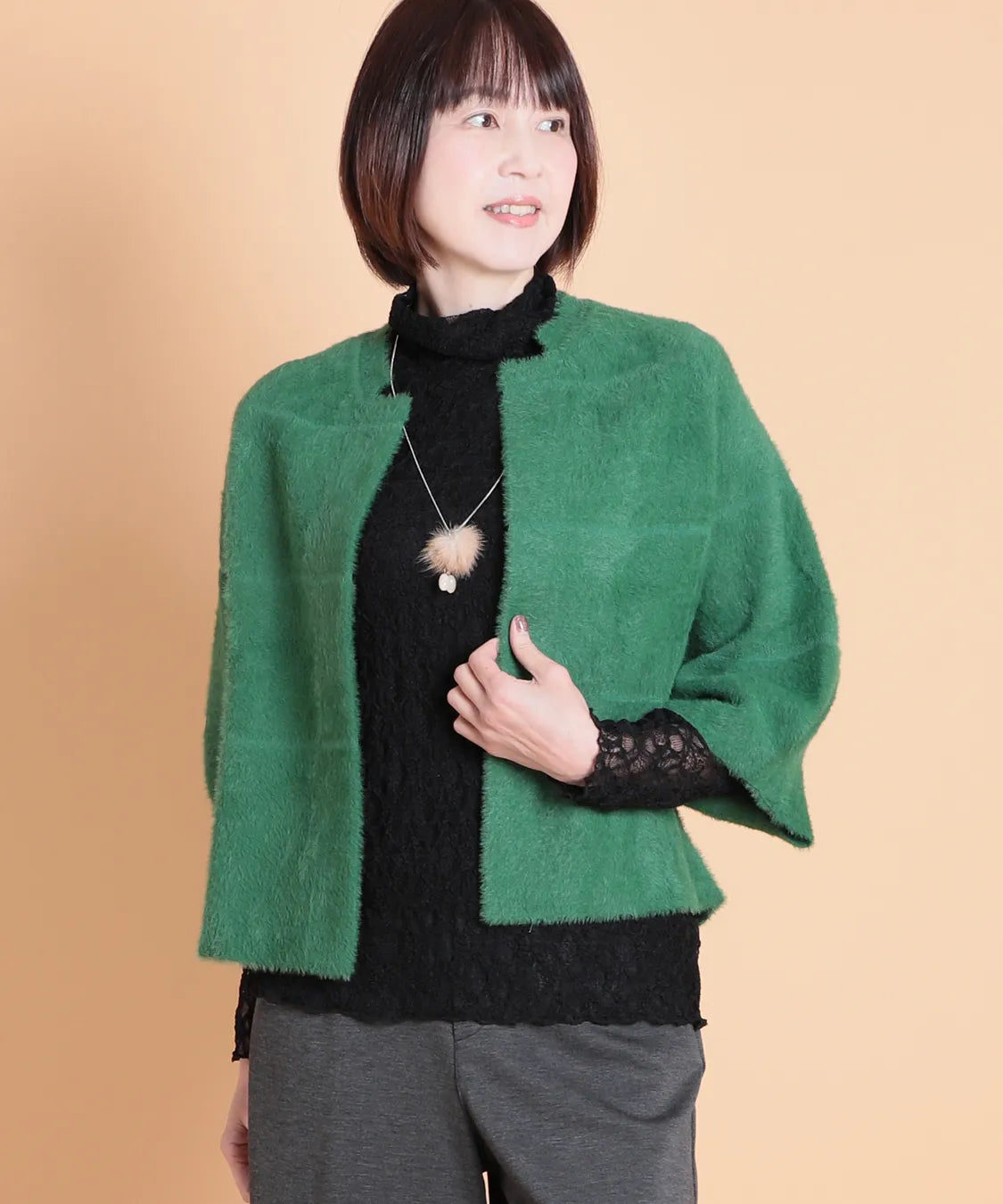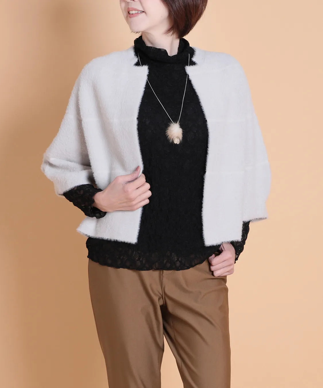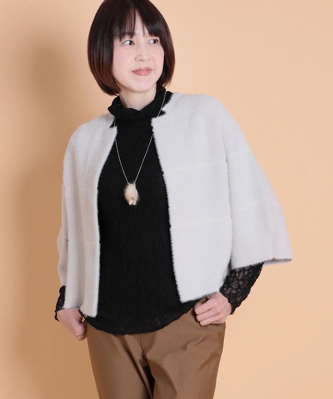 ふんわりとした毛足感が上品な、シャギー素材のショートカーディガン。