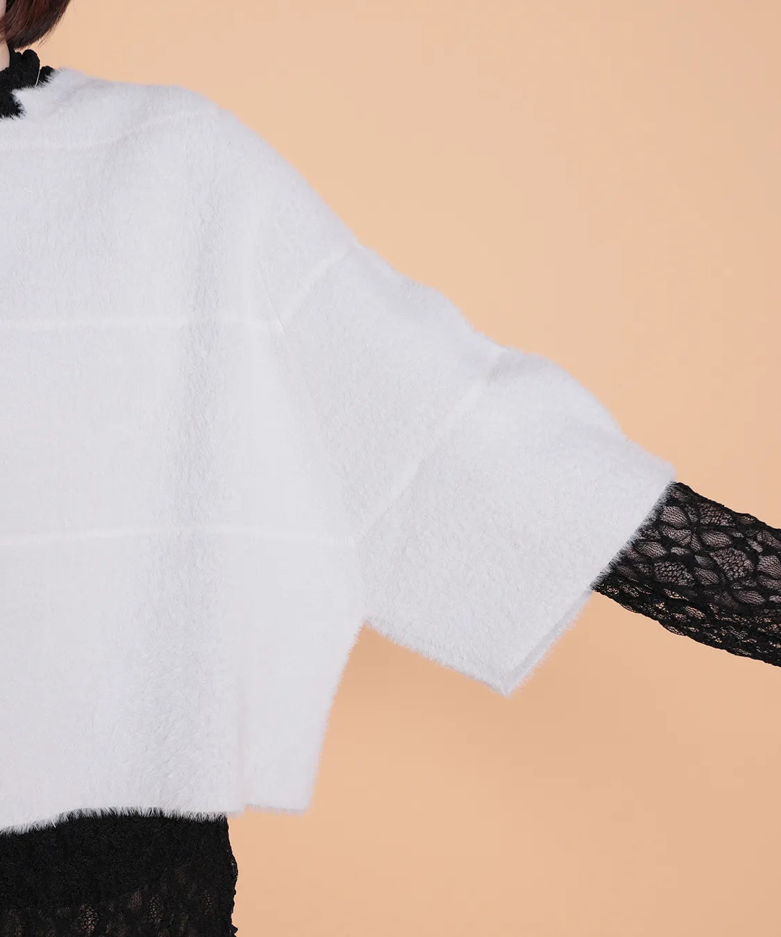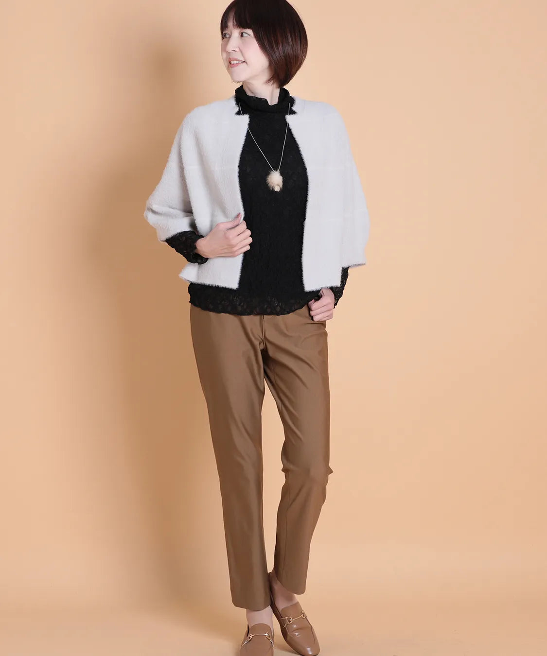 ふんわりとしたシャギー素材で、柔らかく上品な風合い。軽やかな着心地です。