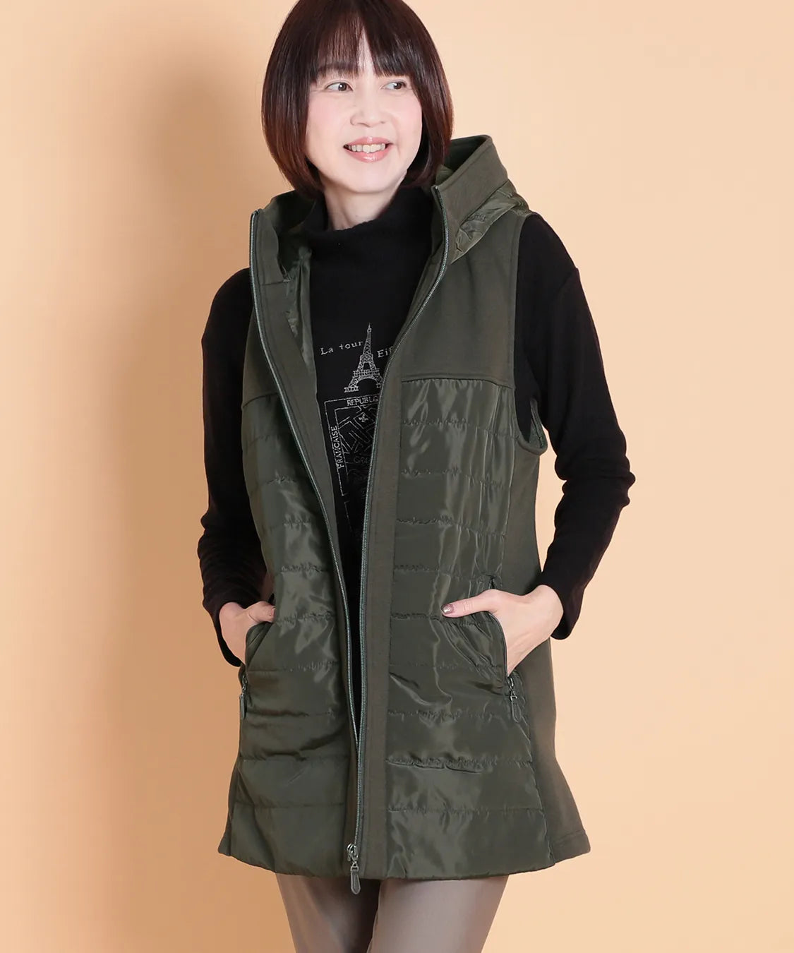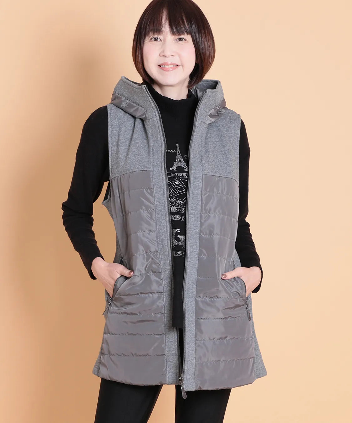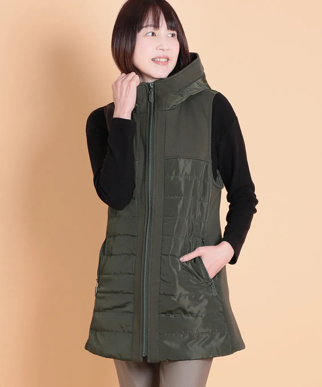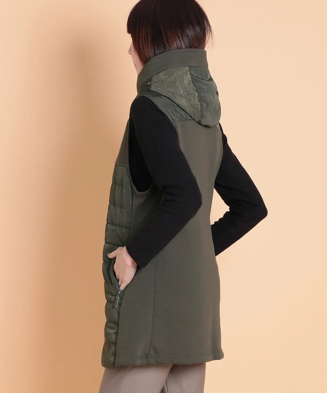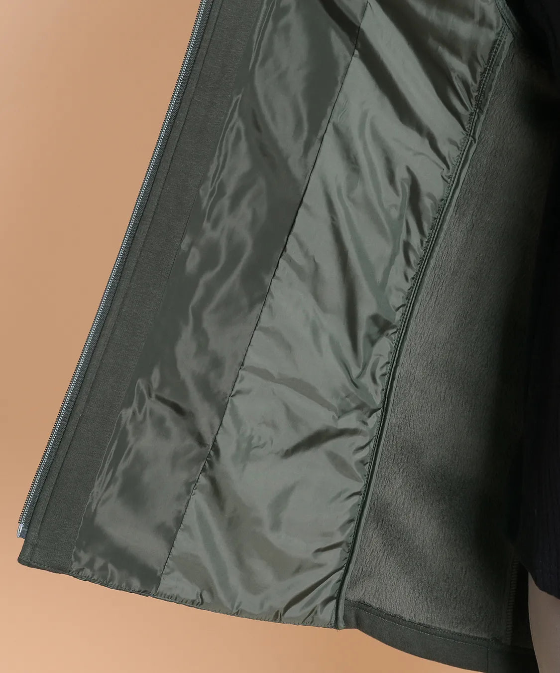 異素材ミックスのデザインと、やや長めの丈で、動きやすさと防寒性を両立した万能アイテムです。