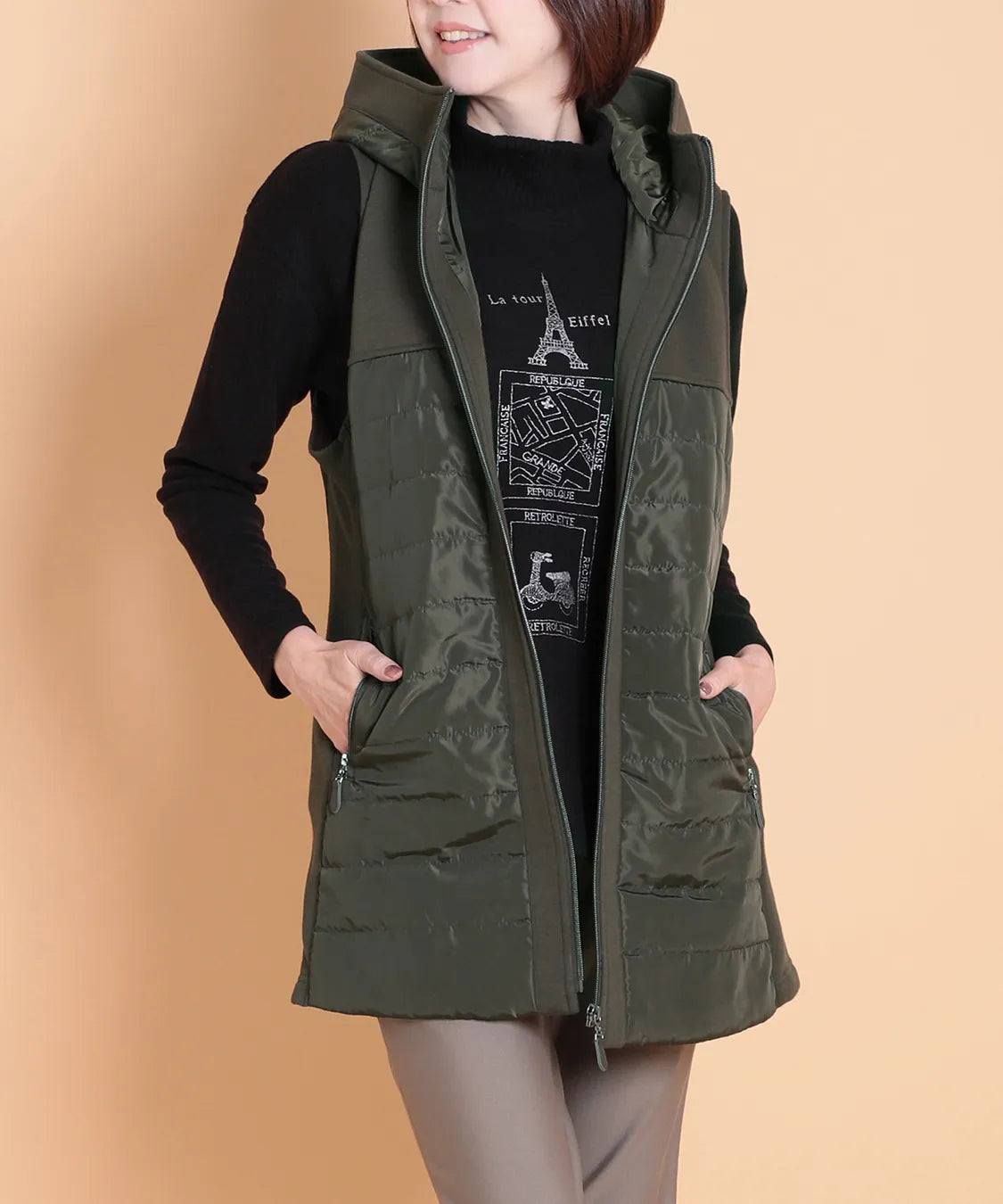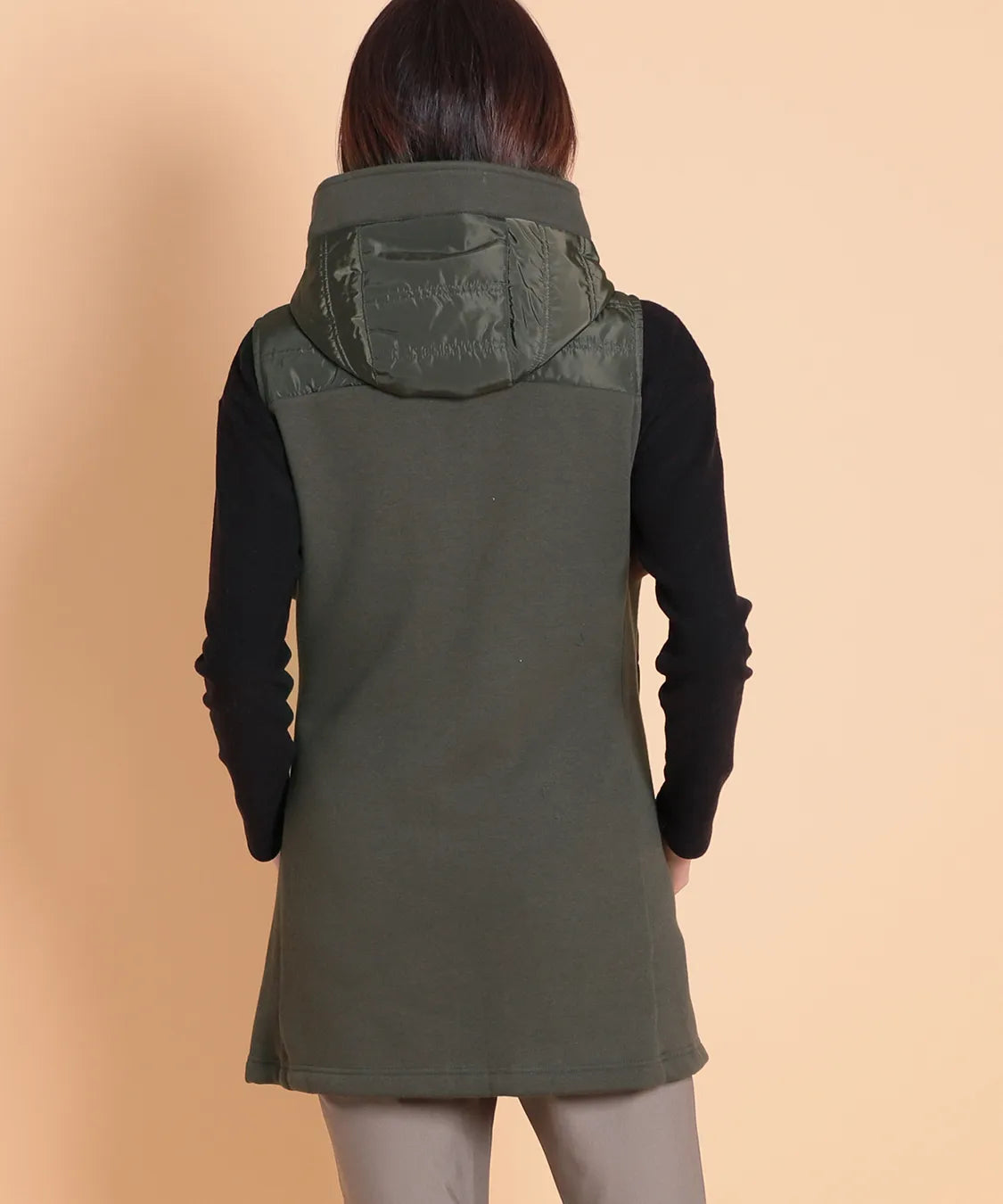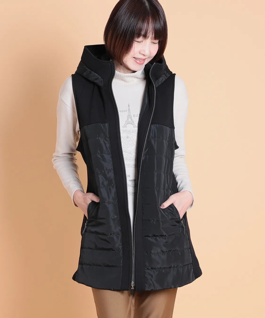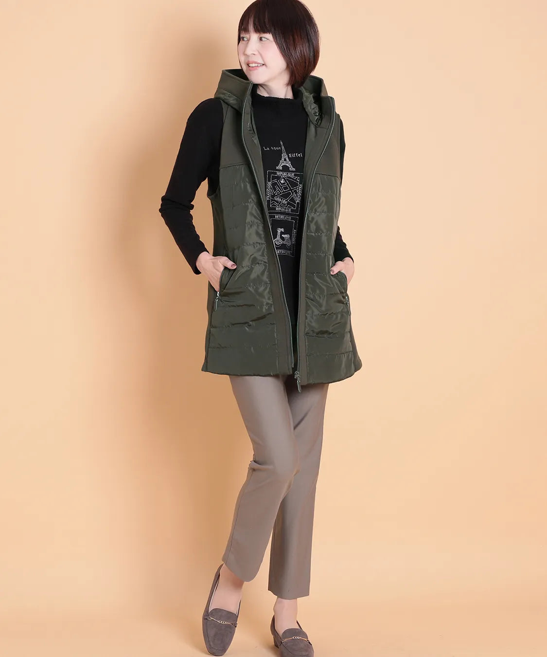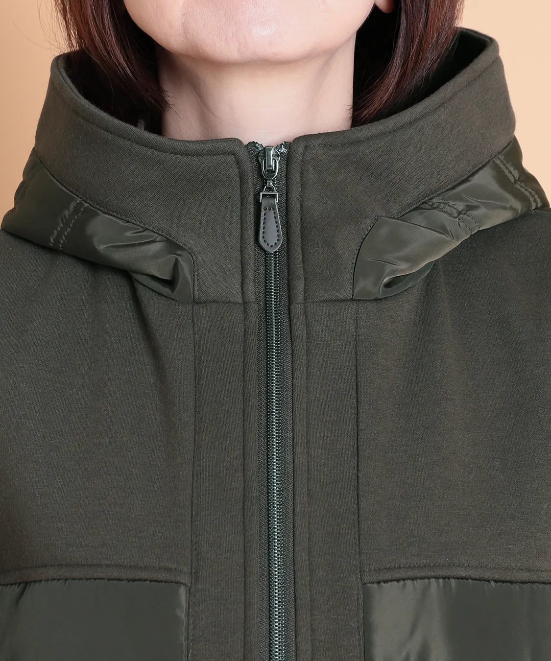 異素材ミックスのデザインと、やや長めの丈で、動きやすさと防寒性を両立した万能アイテムです。