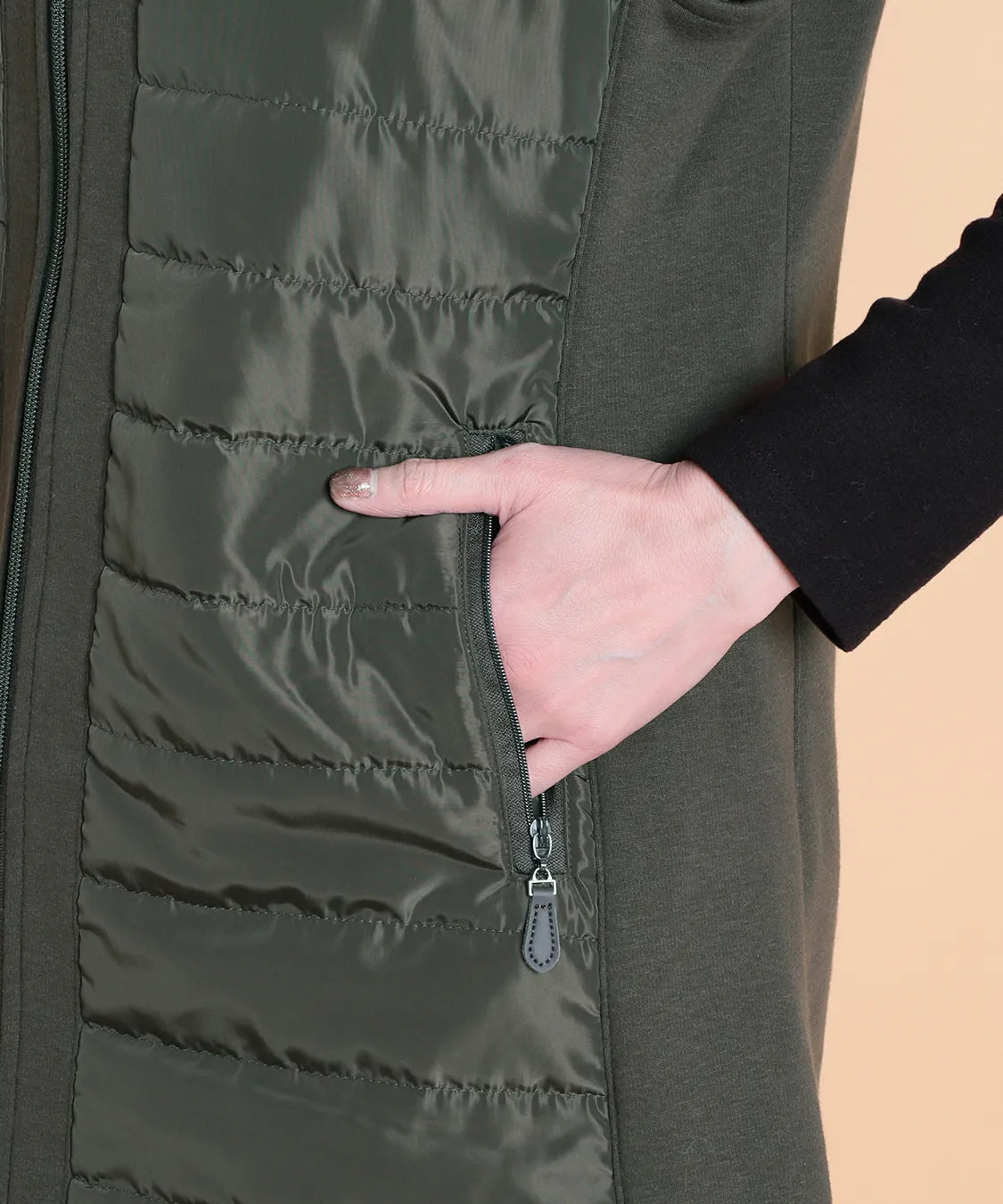 ・上部はカットソー素材、下部はキルティング素材の異素材ミックス