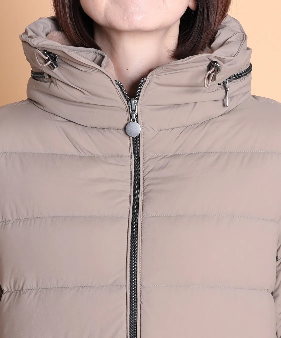 首元までしっかり包み込むスタンドフード仕様で、寒い日でもあたたかさをキープします。