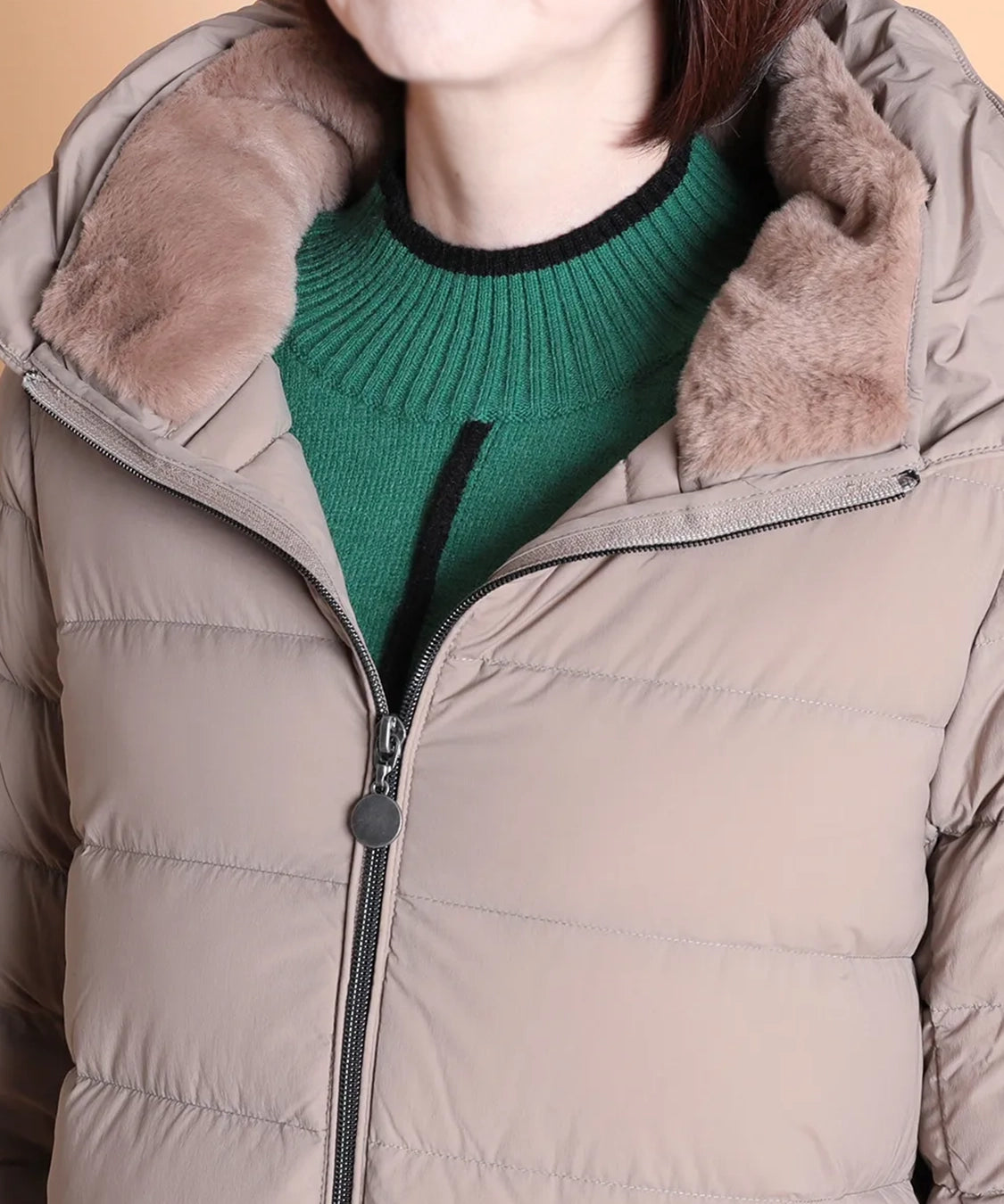 衿裏には柔らかなファーをあしらい、肌当たりが良く、見た目にも上品なアクセントに。