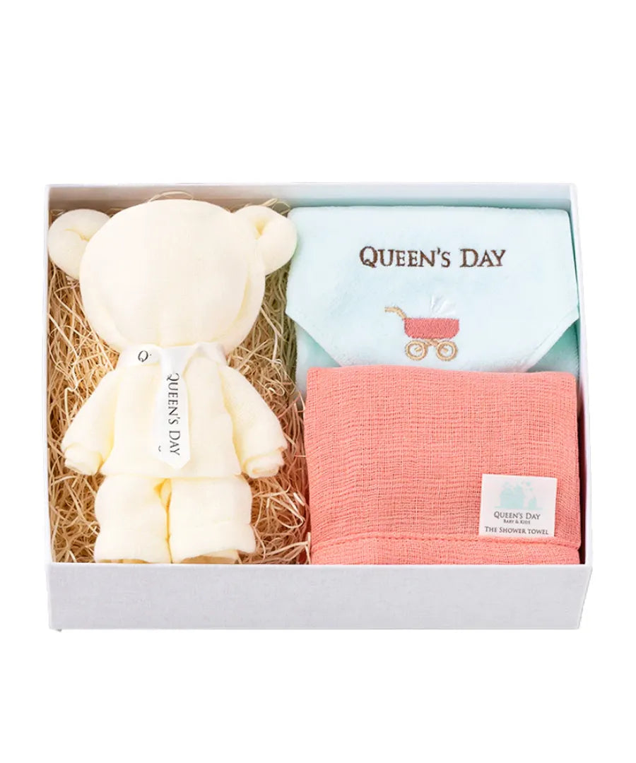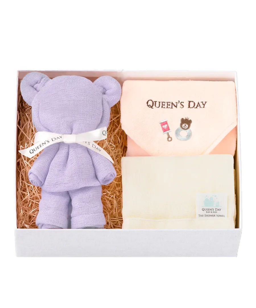 シャワータオル2枚(内1体 ベア仕様)+ハンドタオルセット BASIC BOX(M)