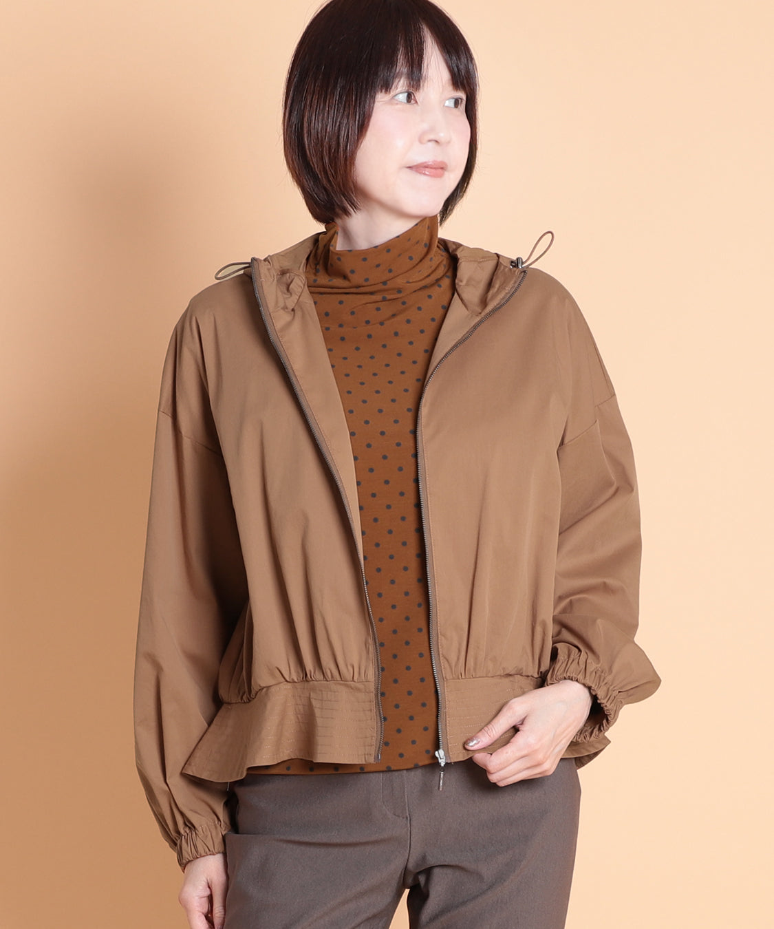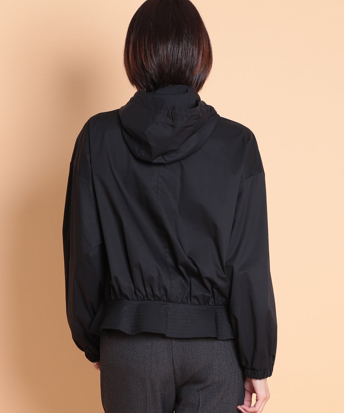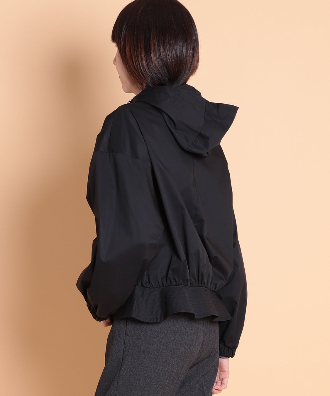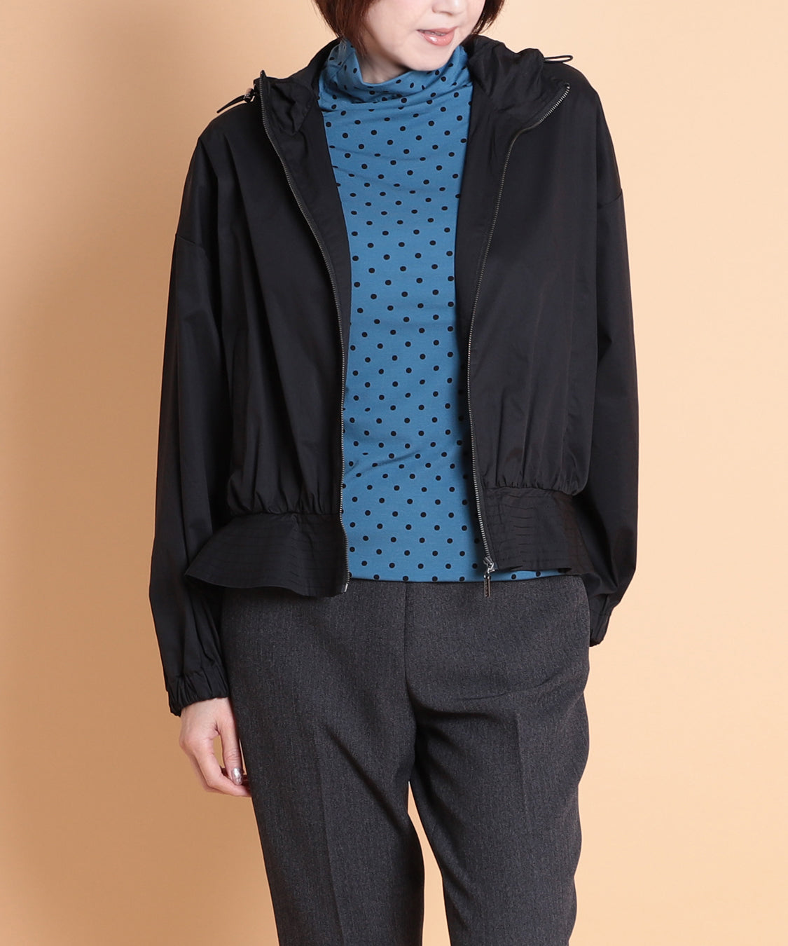 季節の代わり目に大活躍するフード付きペプラムパーカー