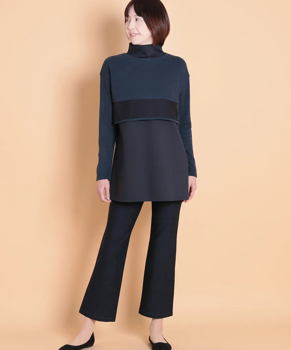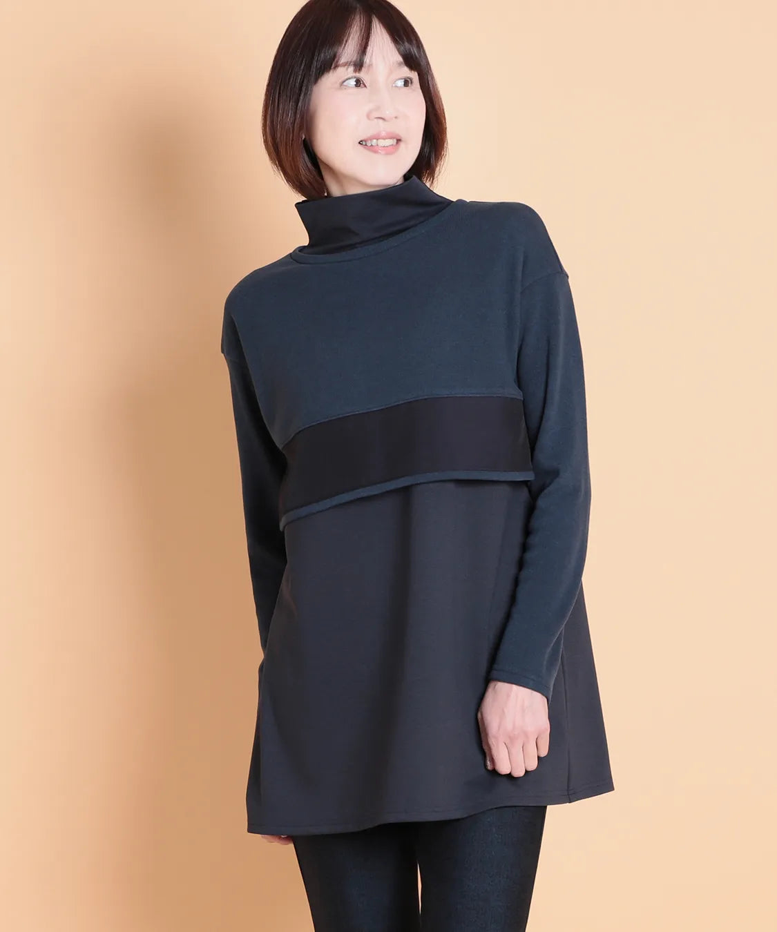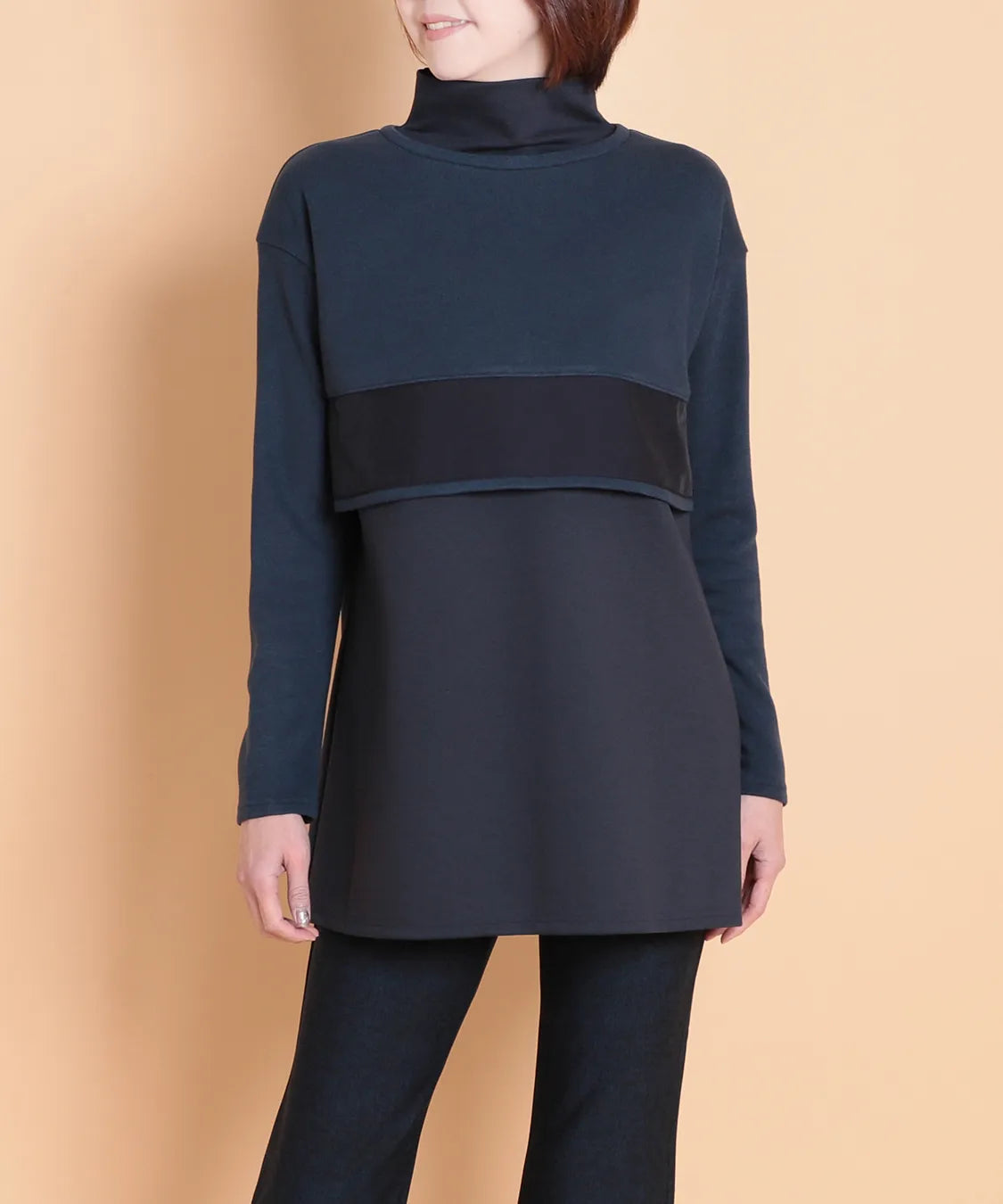 やわらかい着心地と上品なデザインがうれしい、タートルネックのチュニックです。