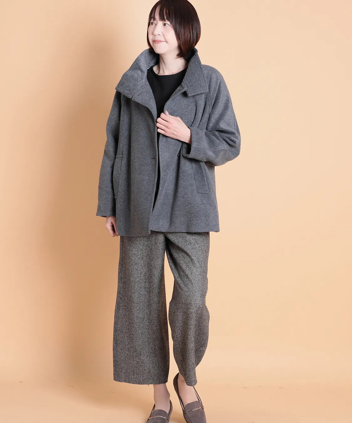 着るだけで上品見え。やさしい暖かさのスタンドジャケット。