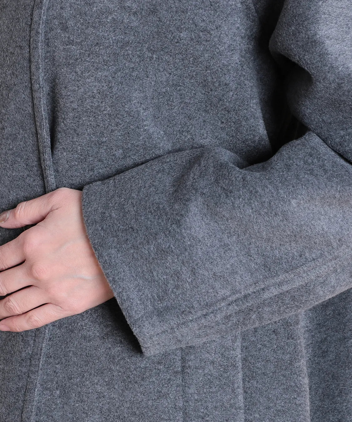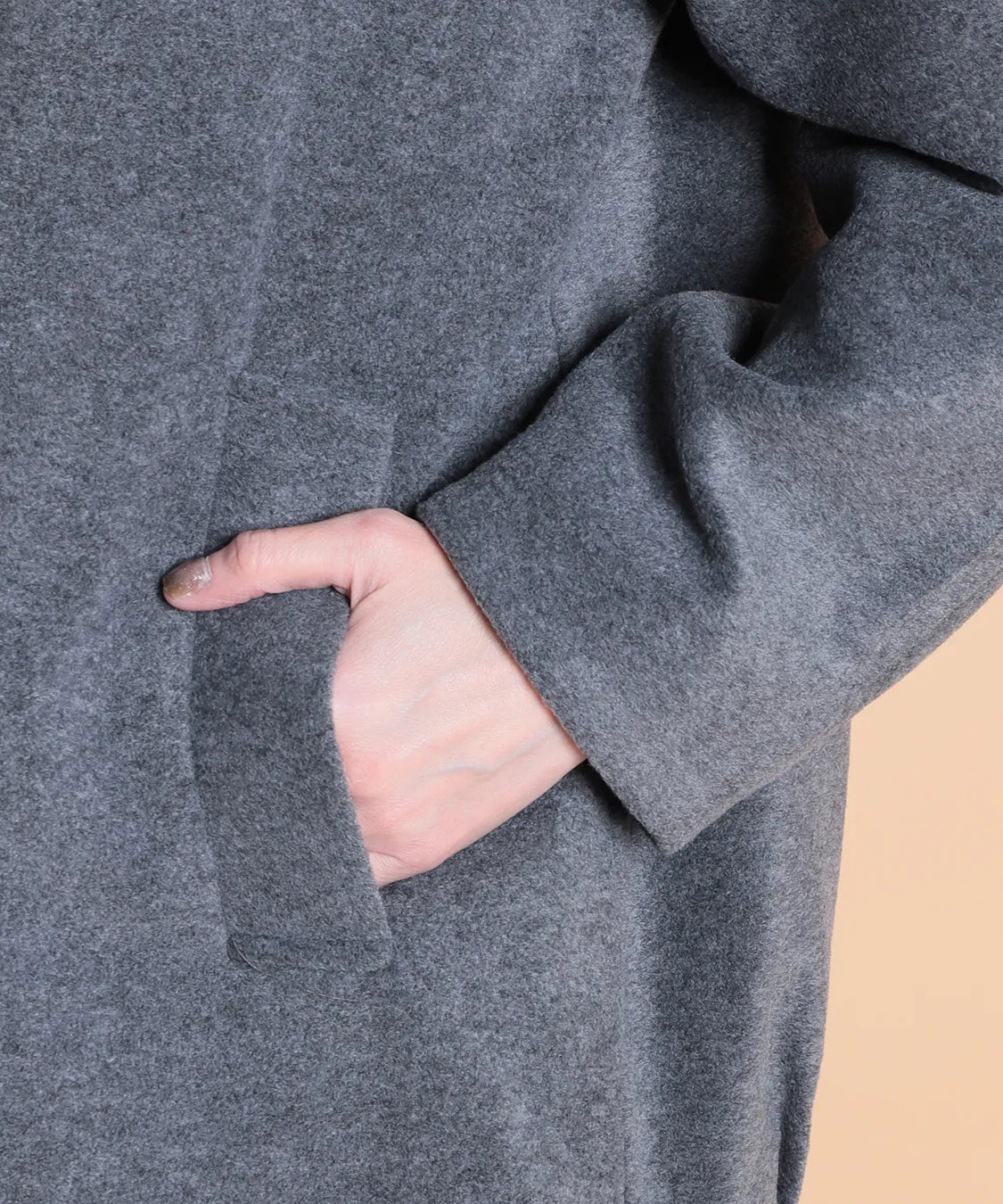 ゆったりとしたシルエットでインナーを選ばず、重ね着してもごわつきにくいのが嬉しいポイント。ヒップまで隠れる丈感で、体型カバーにも優れています。両サイドの大きめポケットは実用的で、手を入れたときも暖か。